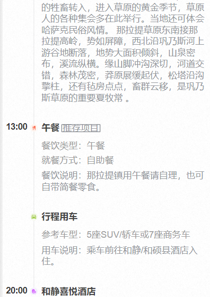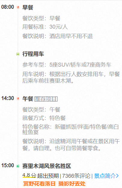游玩:景区游玩的项目,如:坐船、骑马等;\n餐食:全程正餐(午餐晚餐自理);\n