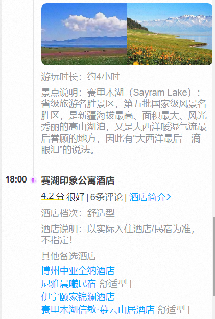 【景点门票】:博斯腾湖 那拉提空中草原 赛里木湖风景名胜区;