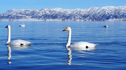 天鹅乐水 : 这是赛湖全湖唯一不结冰的水域,因为有地下温泉补给。成群的天鹅在这里过冬,可以近距离观赏它们在冰雾中游动的优雅身姿。