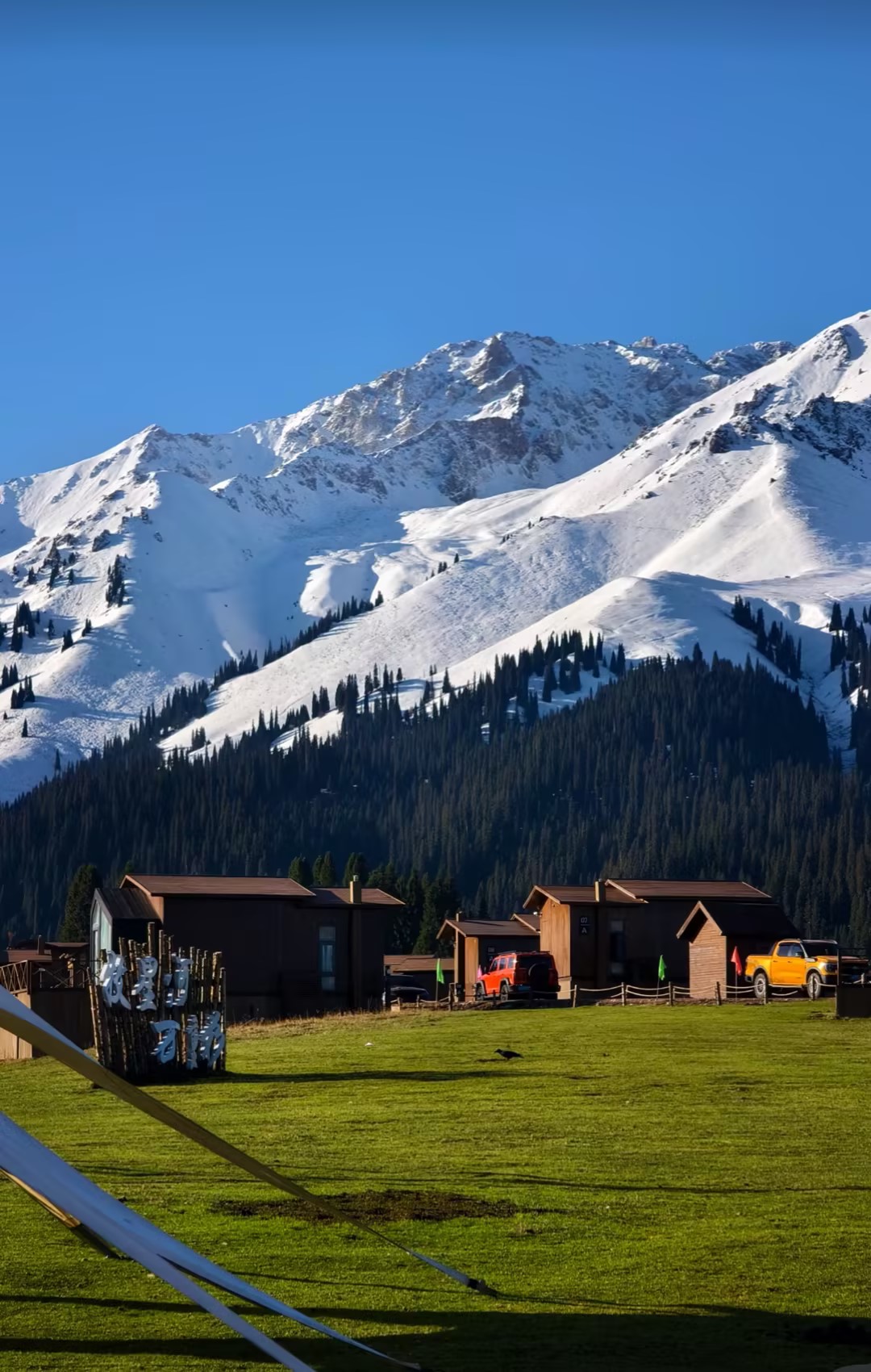◦ 看点:密集云杉与野果林,河岸林海与远处雪山同框;可短暂休息,买热饮、简餐;