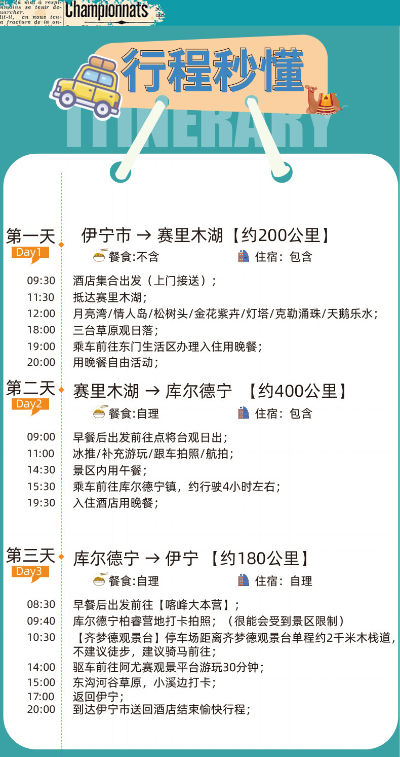 餐饮说明:清水河或伊宁用午餐;