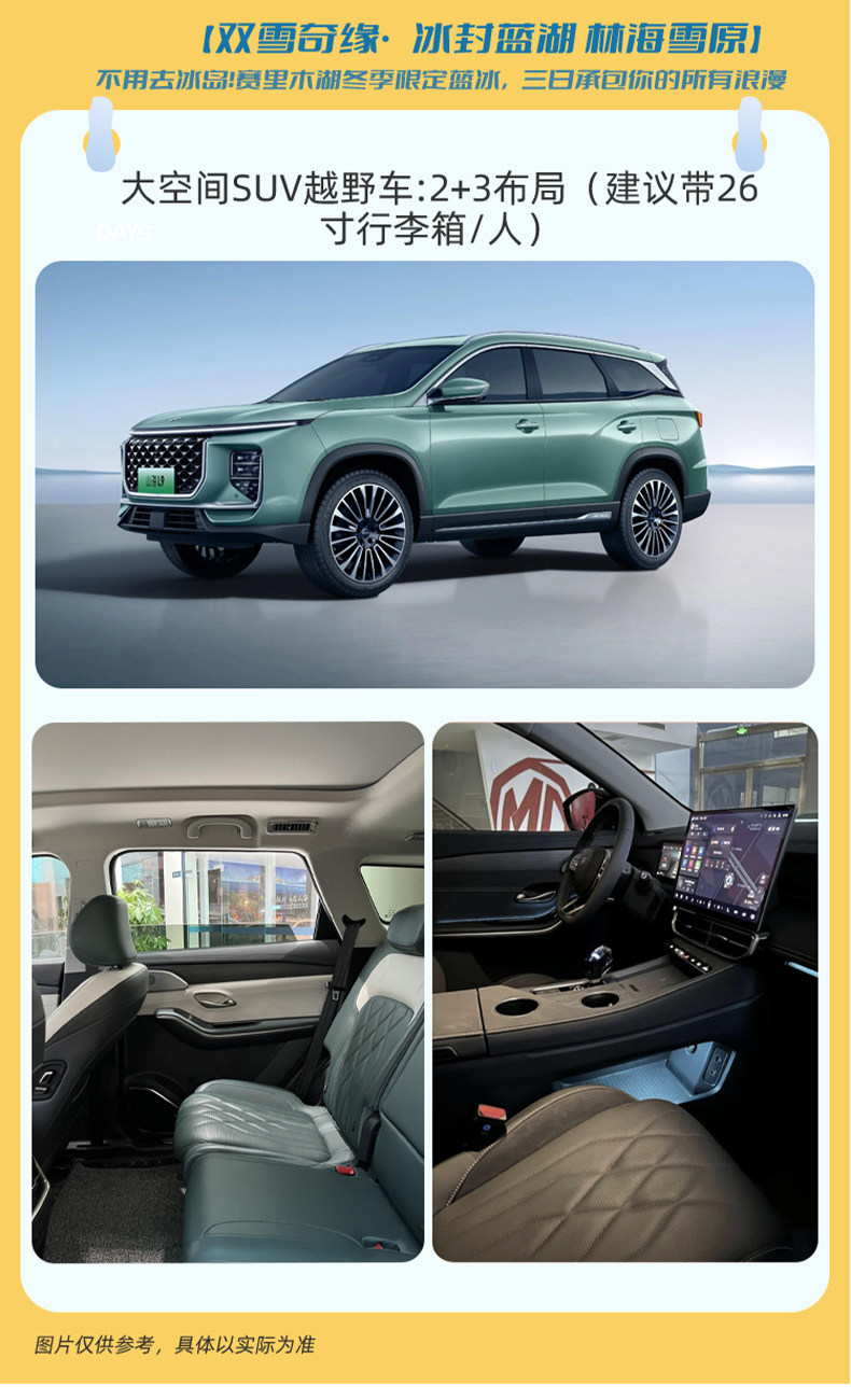 ◦ 玩法:徒步、马拉爬犁(冬季限定),穿亮色衣物拍照出片;