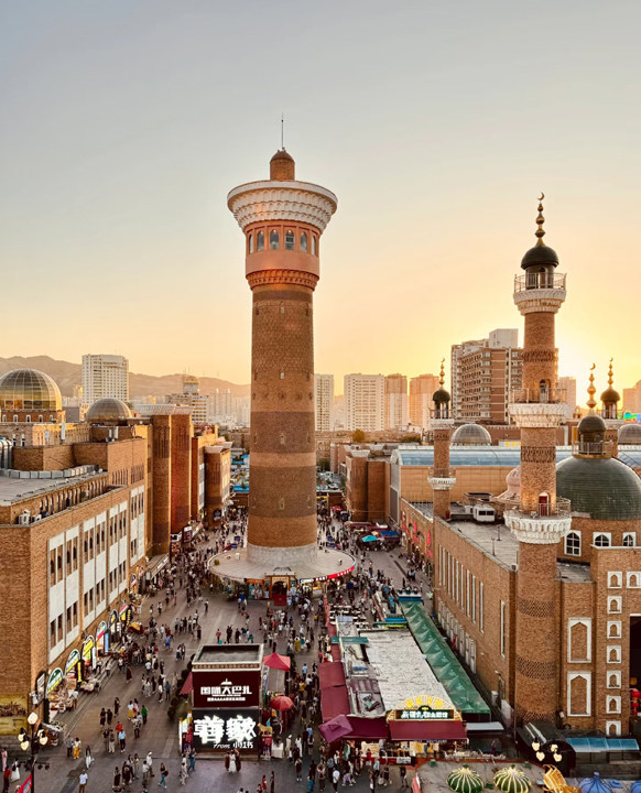 景点说明:·位于乌鲁木齐市天山区,是目前全国最大的巴扎集市,维吾尔族文化表现最集中、留存最完整的地方。·最著名的景点是广场中心的丝绸之路观光塔,塔内各层都有彩绘和展览,展示了丝绸之路的历史故事。·大巴扎内部贩卖着各种各样的新疆特色美食、手工艺品,品种多得让你眼花缭乱。·集伊斯兰文化、建筑、民族商贸、娱乐、餐饮于一体,是新疆旅游业产品的汇集地和展示中心。