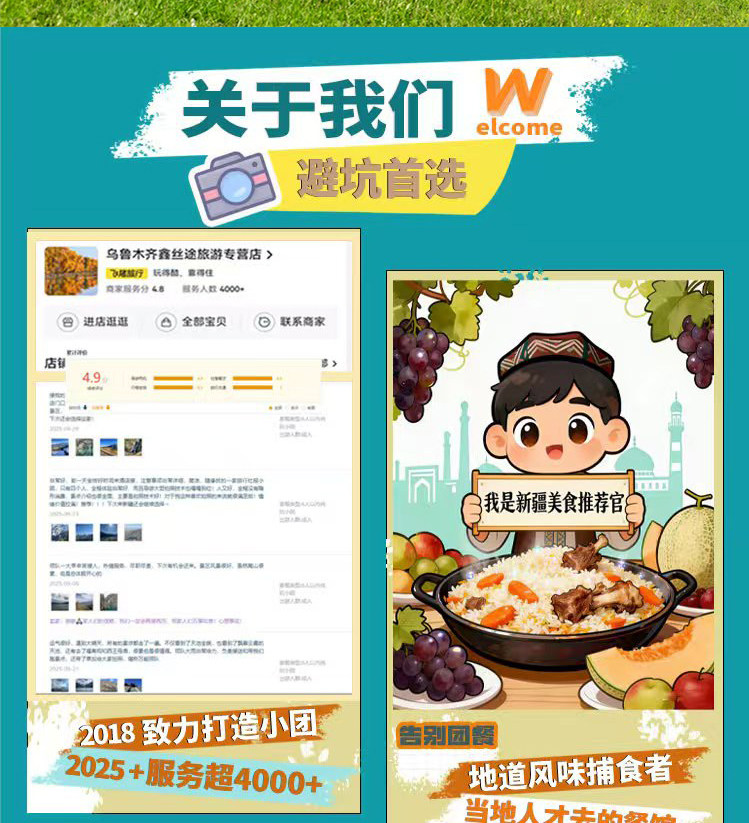 餐饮说明:新疆特色餐多以牛羊肉为主!不吃牛羊肉的小伙伴们一定要提前告知咱们领队哦!