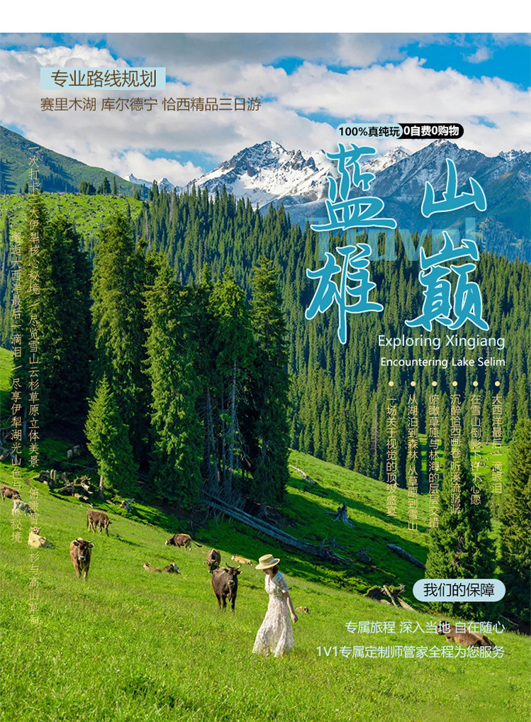 景点说明:塞外江南在伊犁,伊犁最秀是恰西。东西两侧低山如垣,东侧山峦芳草绿茵,西侧山峦苍松凝翠,正南是势如屏障的商山,山顶角峰林立,苍岩露红,冰山隐约,齐齐的林线以下,青杉如良,蜿蜒东西。这里就是颇具盛名的恰西。