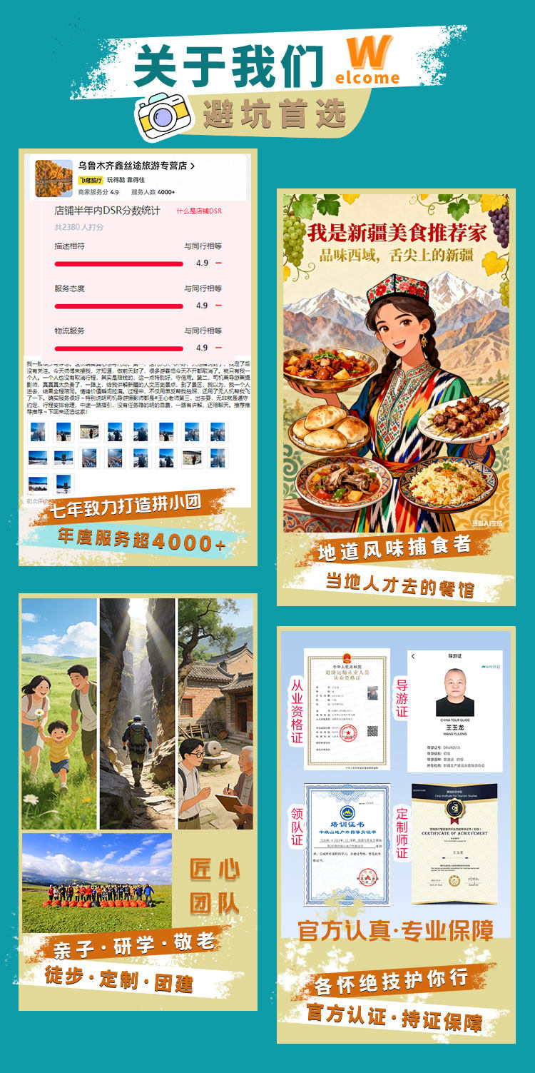 景点说明:·位于乌鲁木齐市天山区,是目前全国最大的巴扎集市,维吾尔族文化表现最集中、留存最完整的地方。·最著名的景点是广场中心的丝绸之路观光塔,塔内各层都有彩绘和展览,展示了丝绸之路的历史故事。·大巴扎内部贩卖着各种各样的新疆特色美食、手工艺品,品种多得让你眼花缭乱。·集伊斯兰文化、建筑、民族商贸、娱乐、餐饮于一体,是新疆旅游业产品的汇集地和展示中心。