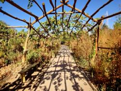 景点说明:吐鲁番坎儿井游乐园位于新疆自治区吐鲁番市境内,处312国道南侧2公里处,是一座为中外旅客提供吃、住、游、乐、购物一条龙服务的旅游定点单位。 坎儿井是与长城、大运河相媲美的古代三大人文工程之一,是吐鲁番的母亲河,火洲的生命之源。坎儿井,维吾尔语叫坎儿孜,原为地下水道之意。是古代吐鲁番人民劳动智慧的结晶。 它由竖井、暗渠、明渠、涝坝(蓄水池)四部分构成,在盆地边缘由高向低打若干口立井,再将立井逐次从地下挖通连成串,水便从地下引出地表。 由于坎儿井水是天山雪水溶化后渗入地下,无污染的天然水,含丰富的矿物质,常饮能使人美丽、长寿。坎儿井开挖在地下,不易蒸发,一年四季水流不断,坎儿井水质清澈见底,甘甜爽口。 新疆的坎儿井主要在吐鲁番盆地、哈密和木垒地区,尤以吐鲁番地区最多,计有千余条,如果连接起来,长达5000公里,所以有人称之为地下运河。 吐鲁番坎儿井乐园于1993年5月16日正式向国内外游人开放,占地面积7亩,区内流水淙淙,林木参天,景色迷人。 悠长的葡萄走廊、平展如毯的草坪、风格别具的坎儿井研究中心展览厅、民族风味餐厅、客房一应俱全,使人爽心悦目,胜似世外桃源。