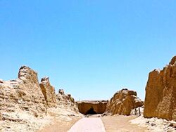 景点说明:历史发展: 交河故城是公元前2世纪至5世纪由车师人开创和建造的,在南北朝和唐朝达到鼎盛,9至14世纪由于连年战火,交河城逐渐衰落。元末察合台时期,吐鲁番一带连年战火。交河城毁损严重,终于被弃。 地理位置: 交河城址,位于吐鲁番市以西约13公里的亚尔乡,吐鲁番市西郊10公里牙尔乃孜沟两条河交汇处30米高的黄土台上,长约1650米,两端窄,中间最宽处约300米,呈柳叶形半岛。因河水分流绕城下,故称交河,最早最早是西域36国之一的 “车师前国”的都城。 建筑布局: 交河故城的建筑布局主要由明显可见的三个部分组成:贯穿南北的一条中心大道把居住区分为东、西两部分,大道北端是一座规模宏大的寺院,以它为中心构成了北部的寺院区,这一区的建筑面积约为9万平方米。建筑多是长方形院落,院落门向着所临街巷。从每所院落的平面布置来看当为寺院,尢其是主室里都有一个方土柱,应是神坛或塔柱;大道东区南部为大型民居区,建筑面积约为78000平方米,北部为小型居民区,中部为官署区;大道西区除大部分为民居外,还分布有许多手工作坊。城中大道两旁皆是高厚的街墙,临街不设门窗。大体南北、东西向垂直交叉、纵横相连的街巷把36万平方米的建筑群分为若干小区,颇似中国内地古代城市的坊、曲。这种建筑布局足以说明,交河故城在唐代曾经进行过一次有规划的重修改建,而唐代以前旧城痕迹则早已面目全非了。