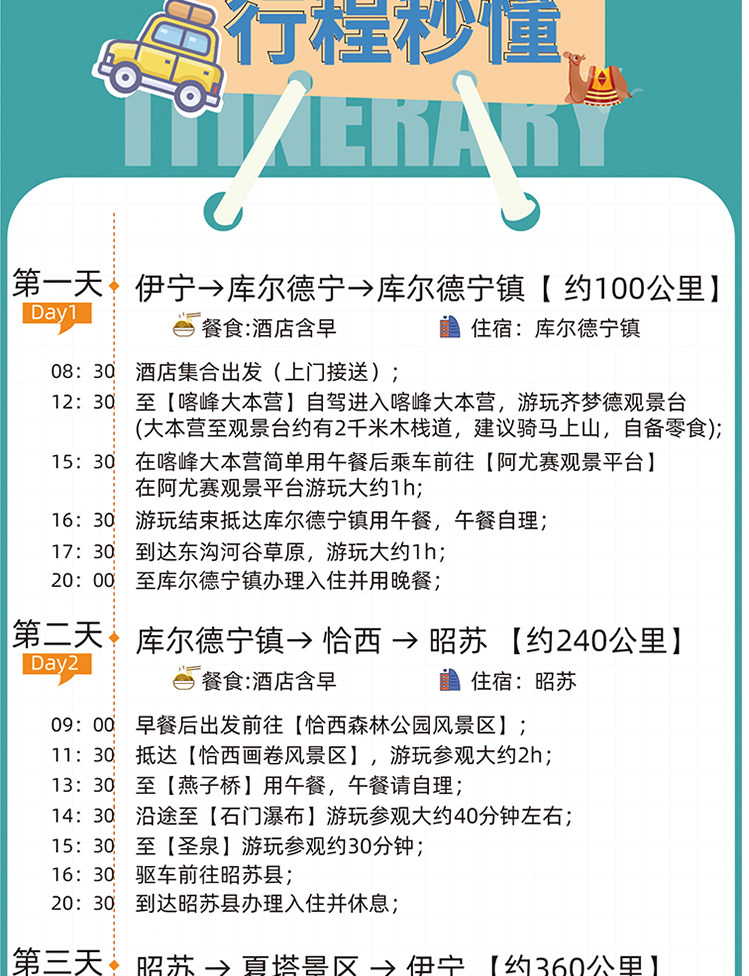 详情:送伊宁市区酒店/火车站,建议定次日返程航班。如赶当日火车,请与司机领队协商好返回伊宁时间。