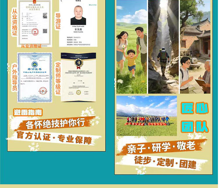 • 装备:防水鞋、冲锋衣、登山杖、防晒、干粮、现金