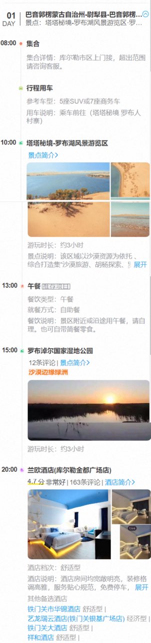 【补充说明】:为增加大家的游玩体验,特赠送塔塔秘境-罗布湖观光游船以及塔里木胡杨林公园观光小火车游玩体验。(赠送项目不用不退)