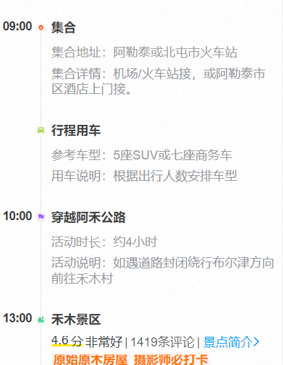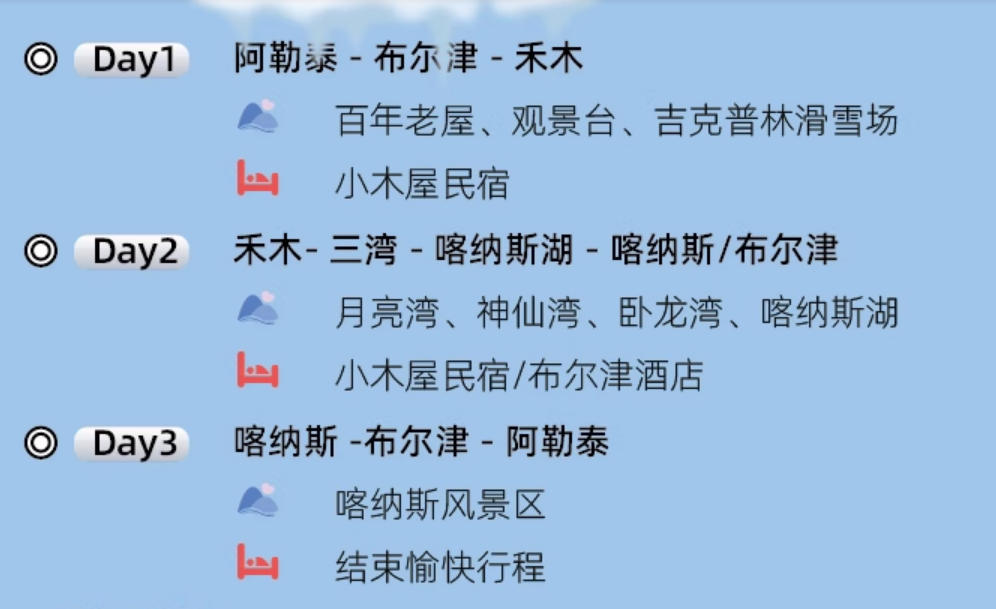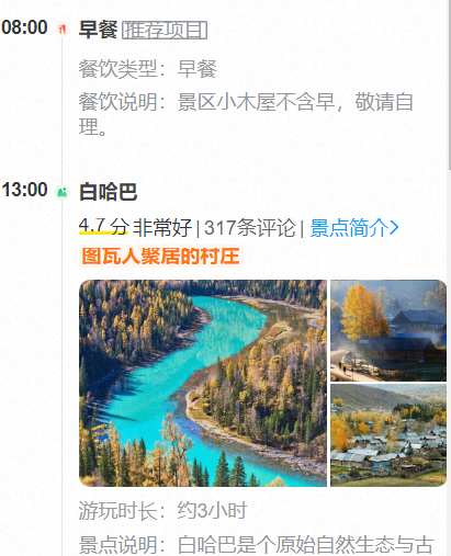 【餐食】:2早(酒店含早不用不退)【景点门票】:禾木 喀纳斯 白哈巴 五彩滩